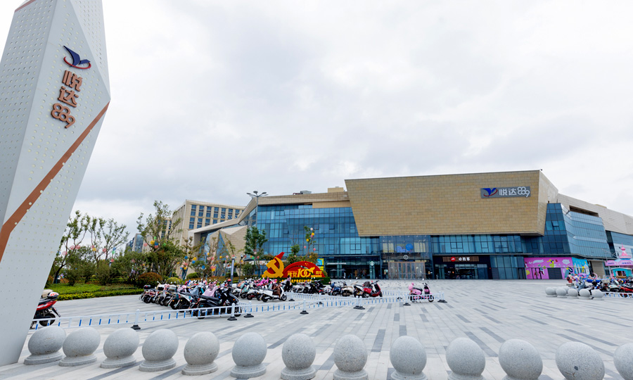 鹽城悅達889廣場位于亭湖區希望大道中路60號,總占地面積約9.4萬方,總建筑面積10.624萬方,其中商業綜合體面積9萬方,建筑高度24.7米,地上4層,地下2層。廣場于2018年12月開始建設,2020年10月29日開業,目前共有商戶118家。地下一層為永輝超市(面積7238.11㎡)及部分停車區域,地下2層為停車區域,總共有車位754 個。項目定位為集餐飲、休閑娛樂、教育、購物一體的大型購物中心。主要經營業態有零售、餐飲、教育培訓、兒童游樂體驗及影院等。2021年實現銷售3.5億元。