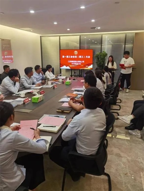 孟夏時節,生機涌動。5月30日下午,江蘇綠陽置業有限公司工會召開第一屆會員(職工)大會。綠陽集團副董事長、總經理朱龍云,悅達香港(地產)平臺工會主席潘勇出席會議并講話,綠陽置業黨支部書記、總經理陳萬青主持會議。