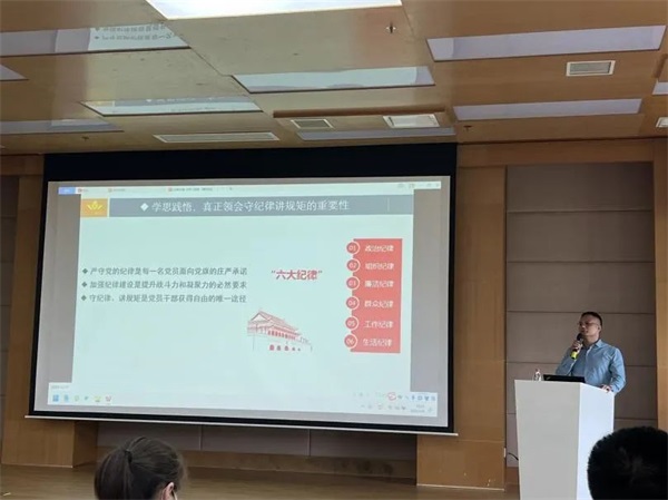 在廉政授課講堂,大家一起聆聽了大豐區紀委監委黨風政風監督室主任董曉劍的《以案為鑒,守好紀法底線》廉政黨課。課堂圍繞“學思踐悟,真正領會守紀律講規矩的重要性” “知行合一,在工作生活中守牢紀律底線” “堅守初心,成為一個真正內心強大的人”三個方面,通過身邊人、身邊事警示教育大家,切實把好思想關、政治關、社會關、親屬關和生活關,堅守初心使命、嚴守紀律底線,做政治上的明白人、生活上的清白人、工作上的正派人,筑牢廉潔自律防線。