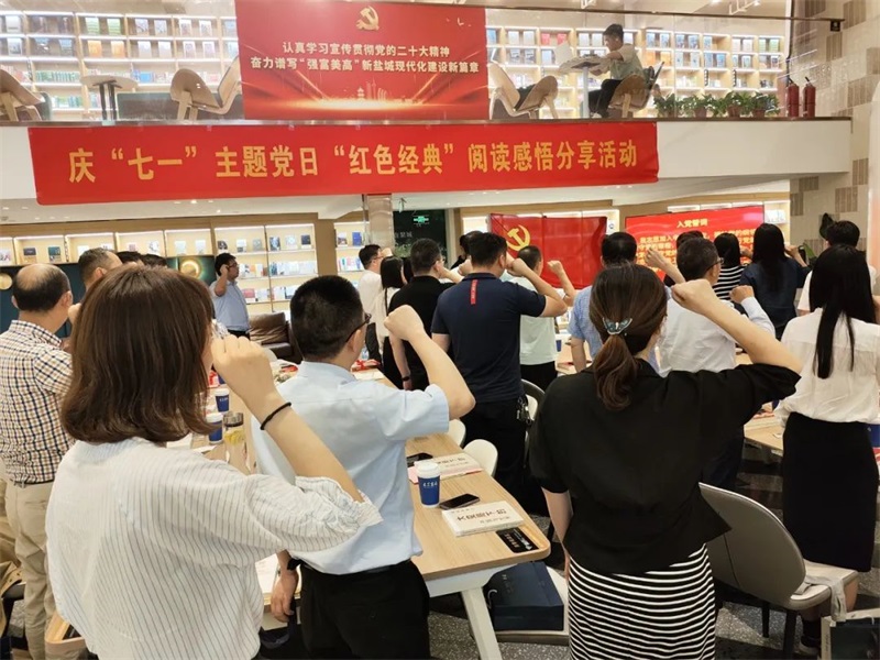 7月1日下午,公司在鹽房地產開發企業黨支部在大眾書局聯合舉辦慶“七一”主題黨日“紅色經典”閱讀感悟分享活動。大家聚焦公司“書香悅達”建設,分享“紅色經典”閱讀感悟,共同慶祝中國共產黨成立102周年。來自5個項目的50名黨員及入黨積極分子參加現場活動。
